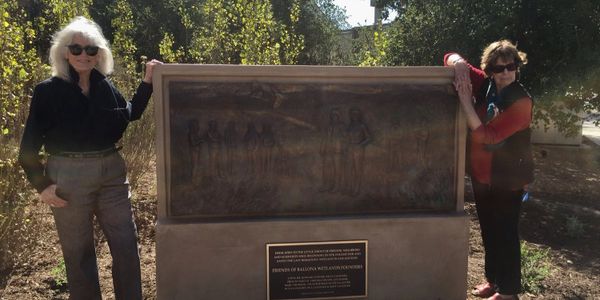 Members listed on the plaque are the late Dr. Howard Towner, Professor of Biology at Loyola Marymount University; Willy Lansford, son of Ruth and Bill Lansford; the late Ed Tarvyd, Professor of Marine Biology and Zoology at Santa Monica College; the late Virginia Wilson, Neighbor; the late Jan Rader, Neighbor and Treasurer; the late Mary Thomson, the Mother of Dunes Restoration in the Wetlands; Councilwoman Ruth Galanter; Ruth Lansford, Founder of the Friends; the late Bill Lansford, husband to Ruth Lansford; and Matt Lansford, son of Ruth and Bill Lansford.